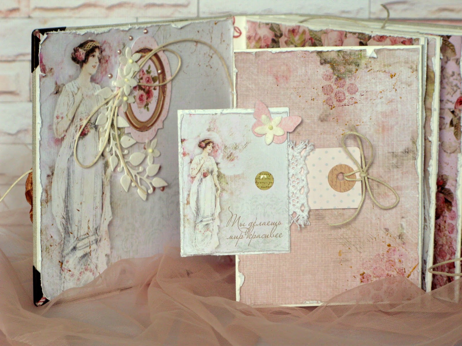 К созданию этого альбома я готовилась заранее и когда наткнулась на бумагу из коллекции "Нежность" от ScrapMir, то сразу поняла, кокой он будет, благо и высечки, и эпоксидные наклейки тоже были в наличии))).